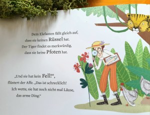 Weil die Tiere sich vorurteilslos darauf einlassen, können sie spüren wie es ist, wenn man etwas oder jemanden ins Herz schließt. Und nicht nur das! Sie lernen allerhand Kurioses aus der Menschenwelt kennen. „Borsten am Stiel“, „Augenfenster“ und das „Essen mit Werkzeugen“. All das probieren sie staunend aus. Auch die Tiere zeigen etwas aus ihrer Welt: Wisst ihr wie man ein Spinnennetz knüpft? Oder habt ihr schon einmal gehört wie sich ein Echo aus sechs Kehlen anhört? Es geht eben nicht nur um Amelie, die Entdeckerin, sondern um Amelie und die Entdecker.