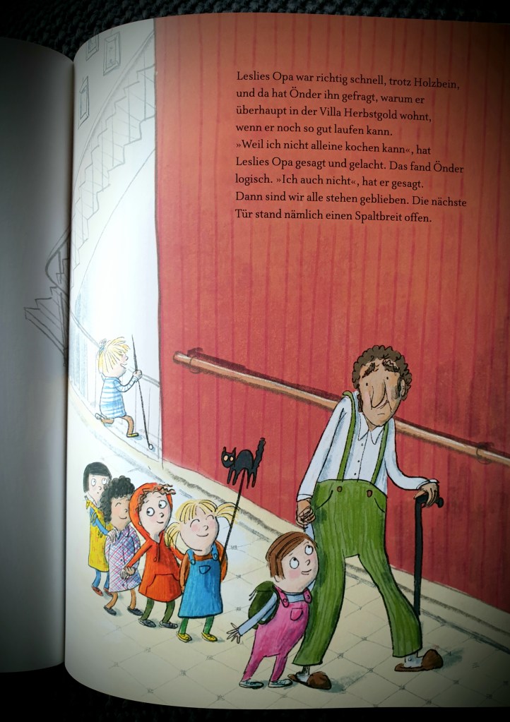 Da sind sie endlich wieder! Leslie, Önder, Una, Ferdinand, Sara und die kleine Erzählerin. Nach dem phänomenal guten ersten Teil „Waldtage“, in dem die Kita-Kinder eine ganze Woche im Wald verbringen, steht nun ein Besuch im Altenheim „Villa Herbstgold“ an. Altenheim? Das hört sich für die Kinder an wie ein ziemlich langweiliger Ort. Una hat Angst, dort könnten auch Hexen wohnen. Was wird dort wohl auf sie alle zukommen? Als Leslie erzählt, dass auch ihr Opa in der Villa Herbstgold wohnt und ein ziemlich cooles Holzbein hat, freuen sich die Kinder dann doch auf ihren Ausflug. Schließlich wollen sie dort dann für die alten LeuteHänsel und Gretelaufführen. Das ist zumindest der Plan. Als dann der Tag des Ausflugs gekommen ist, kommt es schon zu Beginn direkt zu einer Erkundungstour der ganz besondern Art. Und dann stehen die Kinder endlich auf der Bühne. Das Theaterstück beginnt und endet sowas von anders als erwartet, dass am Ende fast alle vor Lachen auf dem Boden liegen…