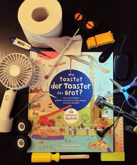 Dieses Sachbuch über die Funktionsweisen von so ziemlich allem startet ganz langsam. Es nimmt sich im Kapitel „Zu Hause“ ganz simpel erst einmal Toaster und Toilette vor. Erst dann kommen komplexe Themen wie zum Beispiel „Windräder und Gezeitenkraftwerk“ oder „Röntgenapparat und Mikroskop“ an die Reihe. Insgesamt gibt es zwanzig solcher Themenbereiche. Da geht es vom Auto über Kühlgeräte zu Robotern. Klingt erst einmal öde, ist es aber überhaupt nicht!